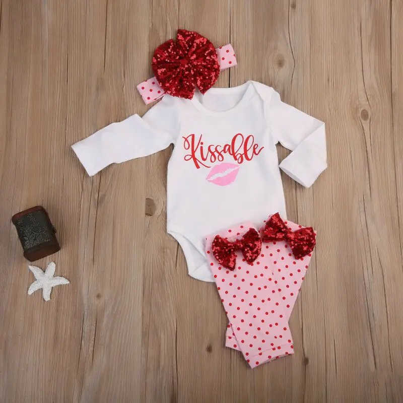 Buy 4Pcs Newborn Baby Girl Kissable Valentine Top Romper Pants Outfits Clothes Set Right Here and Right Now Just for USD US $5.59, Price will be rise up at any time without notification and I cant guaranted that the stock is still available tommorow or next hour. So Please Save It Now!